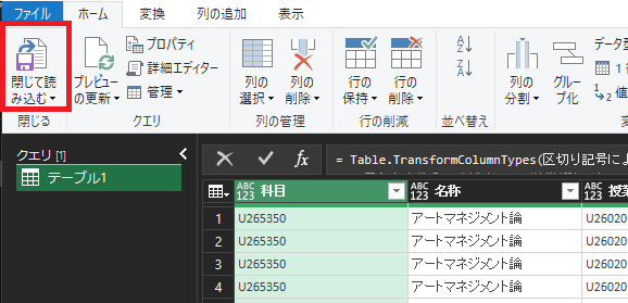 3.Power Queryが開きます。
