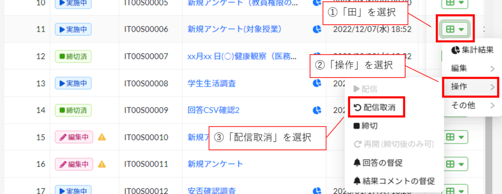 編集中に戻っているため、アンケート作成と同じ手順で操作してください。