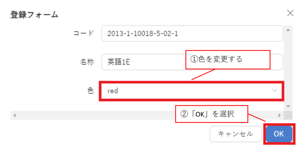 表示された登録フォームから「色」を変更し、「OK」を選択